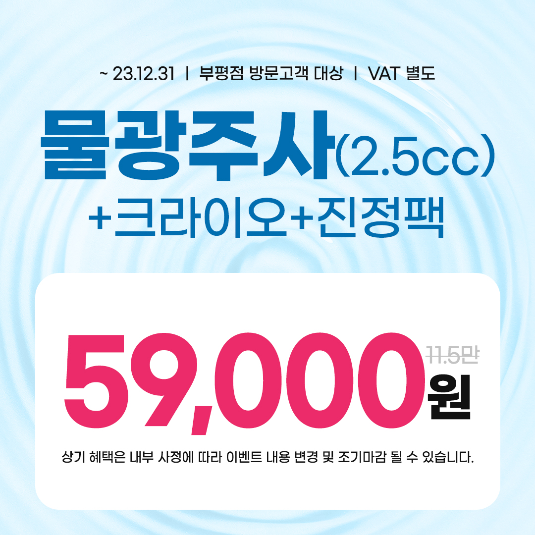 물광주사(2.5cc) + 크라이오 + 진정팩 = 59,000원